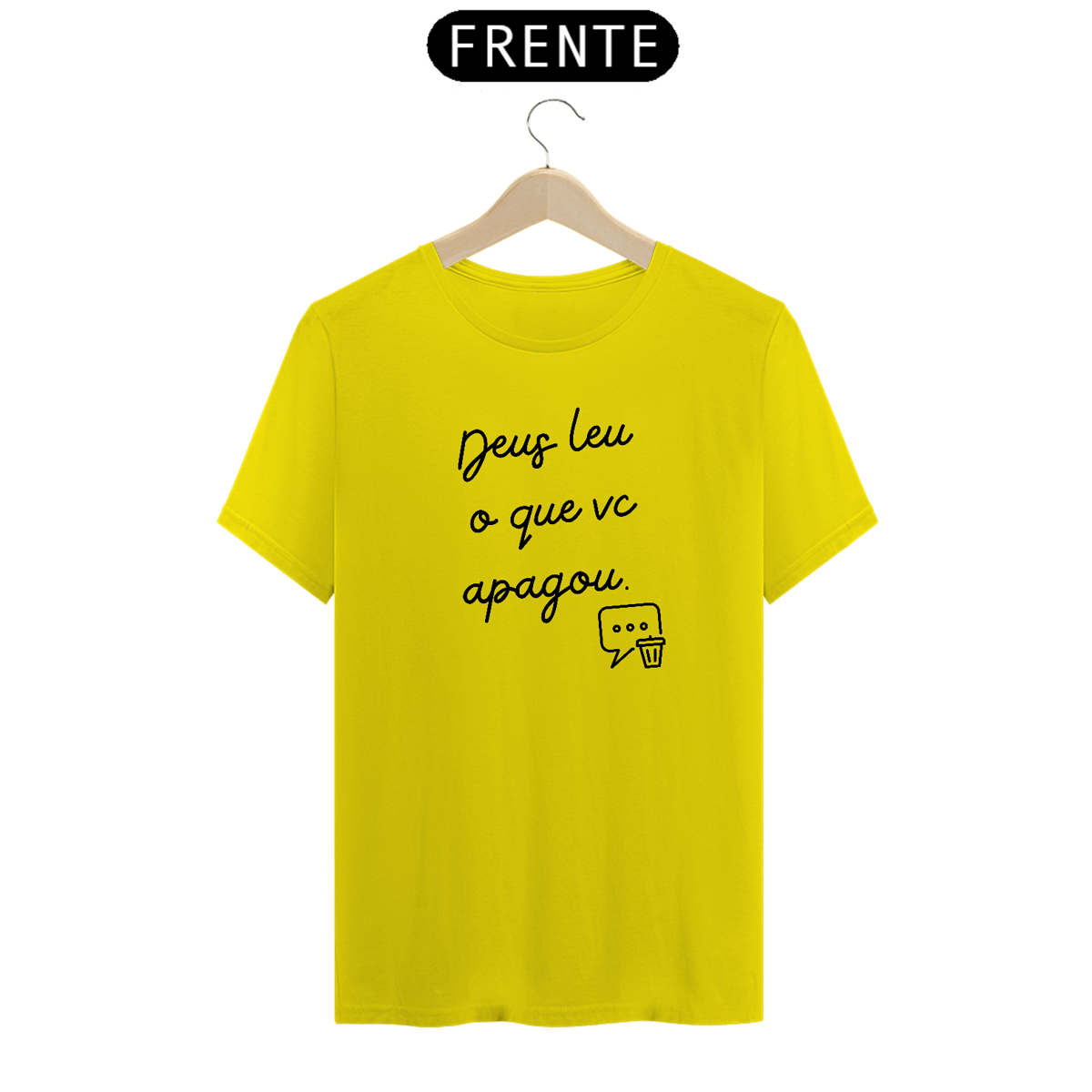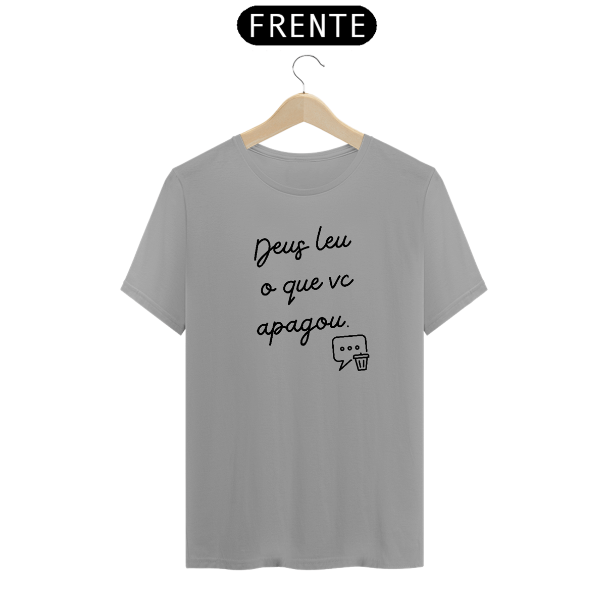 Perfeita para quem já digitou, enviou e se arrependeu, a estampa minimalista com a frase Deus leu o que vc apagou garante boas risadas e aquele toque de ironia que todo mundo adora.